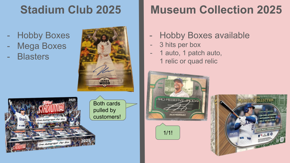 $159.99Configuration: 16 packs per box. 8 cards per pack. PRODUCT HIGHLIGHTS- Stadium Club delivers the most visually stunning imagery in trading cards, featuring on-card autographs, dynamic inserts,... -